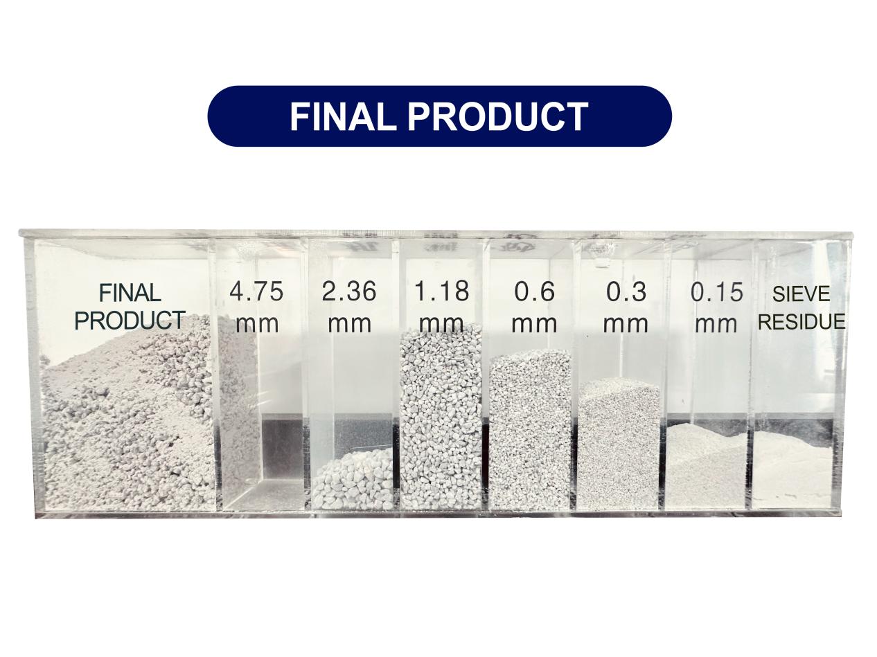 - Высокая эффективность производства, постоянная степень детализации конечного продукта, хорошая зернистость кубического песка и низкое содержание порошка.